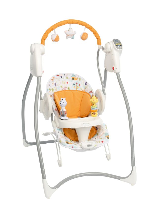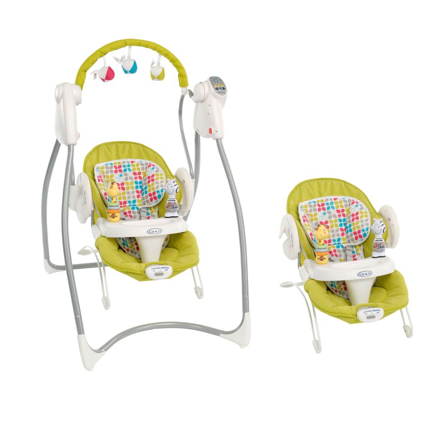 Ви претставуваме лулашка, две во едно, која овозможува комфорно седење и потпора на грбот. Може да се користи како самостоен релаксатор ( баунсер ), или пак може да се инсталира на рамката и да се трансформира во смирувачка лулашка со 6 брзини на лулање. Може да се користи од раѓање до отприлика 9 месеци ( 9 килограми ).